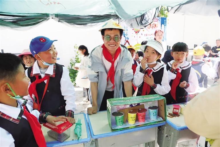 The bazaar was very lively. The children put their idle items in front of their stalls. They had toys, snacks, books, stationaries, small handicrafts and so on. There were a wide variety of goods. Some students even seized on the consumption psychology of other students and brought attractive blind box toys, which excited everyone.